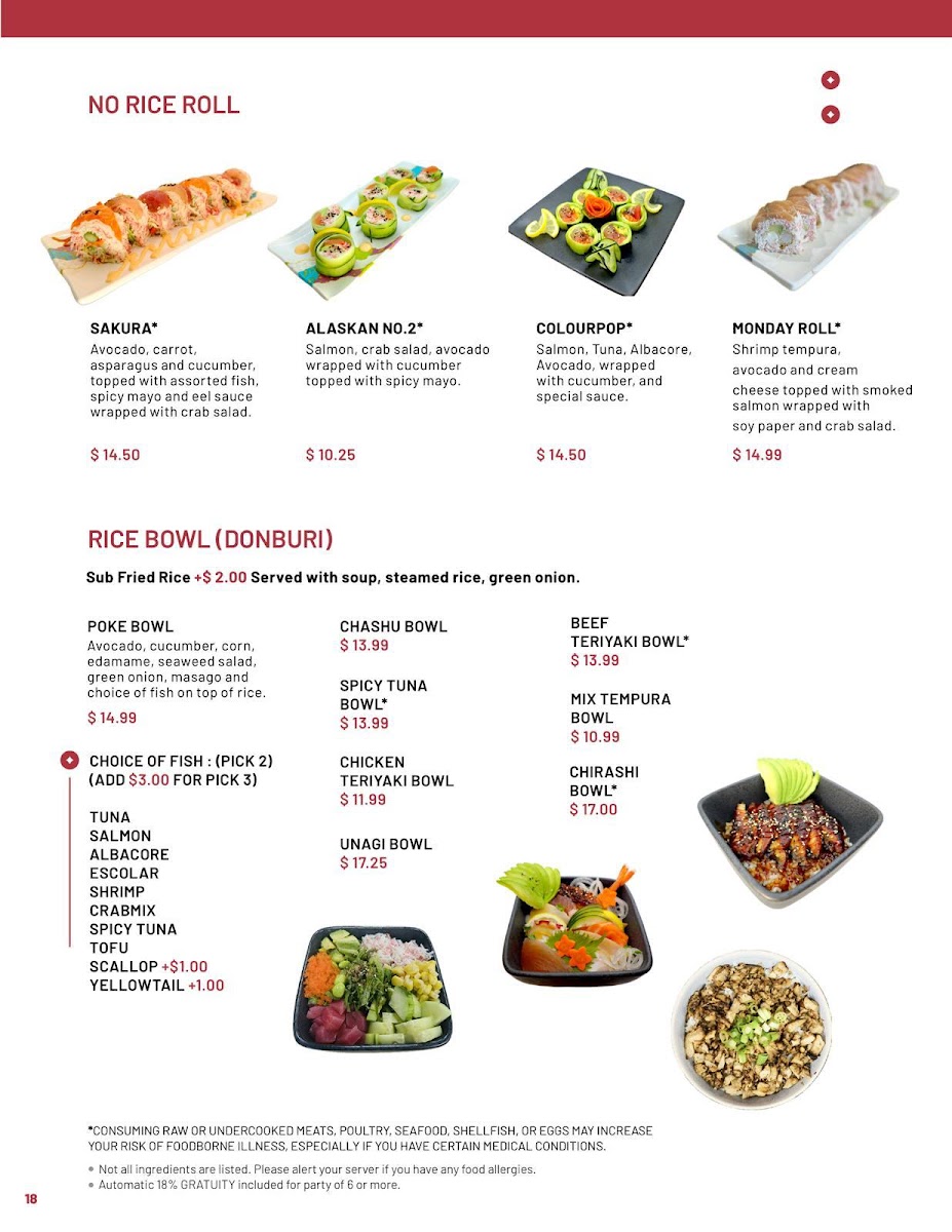 Assorted fish and avocado wrapped in cucumber. No paper comes with Colorpop sauce.